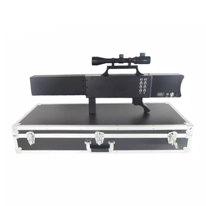 Подавитель птиц 170W – это устройство, выполненное в виде автомата, что делает его использование удобным для одного человека. Его корпус включает в себя антенну с большим коэффициентом усиления и углом направленности в 45 градусов. Но настоящая сила этого антидронового ружья заключается в его 8 независимых радиочастотных подавителях.